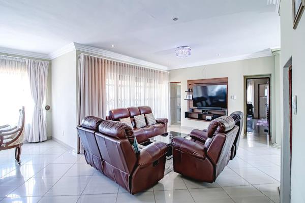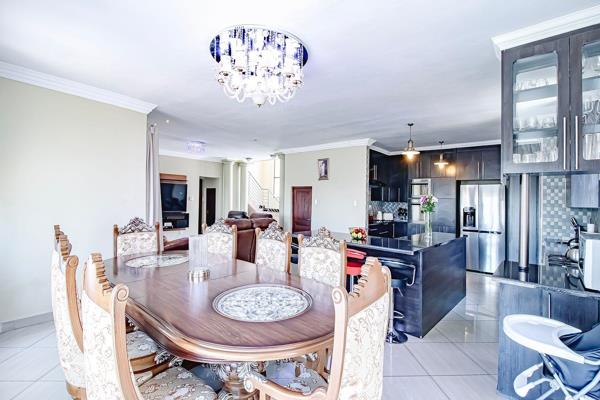 This stunning double storey home offers 5 spacious bedrooms, 3 modern bathrooms and a guest toilet. 4 of the bedrooms and 2 bathrooms are situated upstairs, whilst the guest suite is downstairs. The main bedroom which is upstairs is very spacious, it has a dressing room a full en-suite bathroom and it opens up to a balcony offering lovely views. There is also a pajama lounge upstairs with a kitchenette.