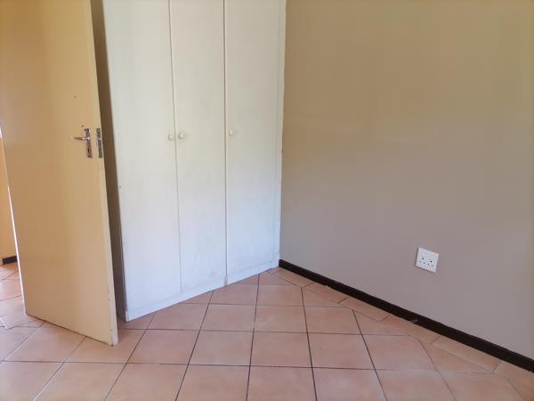 It is newly painted, spacious, has an en suite that offers a shower. It is a gated complex in Amandasig. Very quiet area, closer to schools and malls.