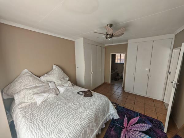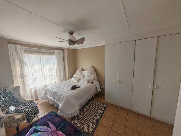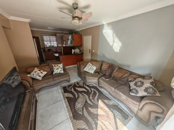 The home features 3 bedrooms, 2 bathrooms, a functional kitchen, and a cozy lounge perfect for family living. Step outside to a covered patio that leads to a private garden complete with a built-in braai, ideal for entertaining.