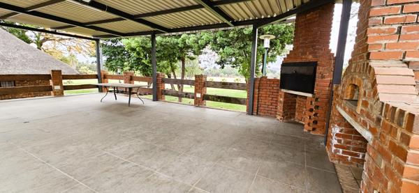 Built-in braai and pizza oven under a covered patio