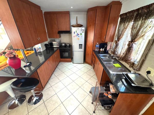 This Beautiful Townhouse offers 2 Bedrooms with built-in cupboards, 1 bathroom that is fully tiled and 1 well appointed guest toilet. Kitchen with built-in cupboards for extra storage, granite counter tops, breakfast nook, dining room that is perfect for meals with family. Open plan living area that leads out to patio with built in braai and well maintained garden that is ideal for relaxing and entertaining guests. 1 x Garages and car port with extra parking for guests.