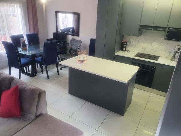 Upon entry, you are welcomed by an open-plan living area, which includes a dining space, a neatly designed kitchen with ample cupboard space and granite countertops, as well as a bright family/TV room. Upstairs, you''ll find two generously sized bedrooms, each with tiled flooring and built-in cupboards, as well as a well-appointed full family bathroom.