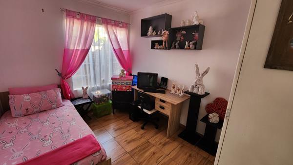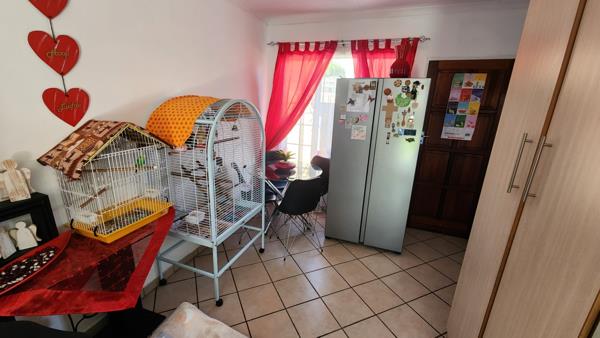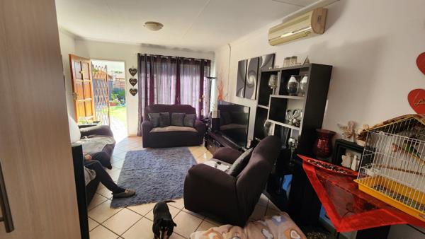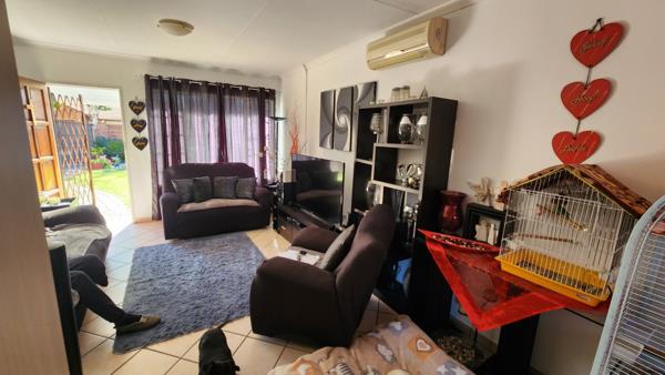 This beautiful townhouse offers 3 Bedrooms with built-in cupboards and 1 bathroom that is tiled. Open plan Dining room and Family room leading out onto the green Garden making it perfect for relaxing and entertaining guests. Kitchen kitchen with built-in cupboards. 1 Garage and 2 Parking''s.