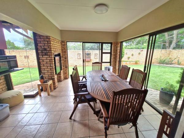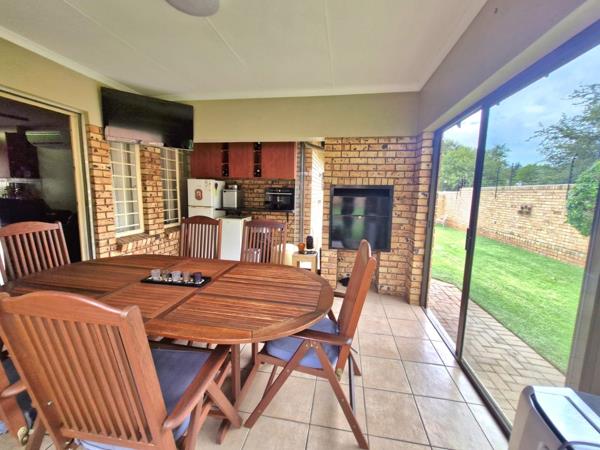 This lovely townhouse consists of 2 bedrooms, 2 bathrooms, open plan living areas, enclosed entertainment patio with a braai, private garden and a sparkling pool in the complex. Large double garage and double carport, with lots of guest parking. The house also offers a water tank and a wendy house. Modern and move-in-and-stay home with lots of extras and definite for the entertainer. Beautiful garden and modern finishes in the house. So much more than a house, this is a home! Come look and see, feel for yourself!