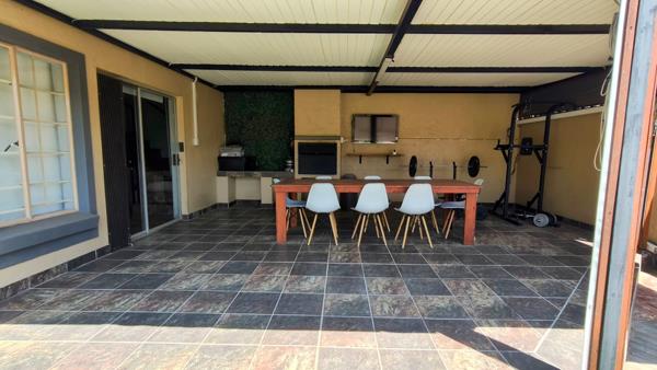 Entertainment Area: Huge covered space with roll-down blinds and a built-in braai, perfect for hosting gatherings.