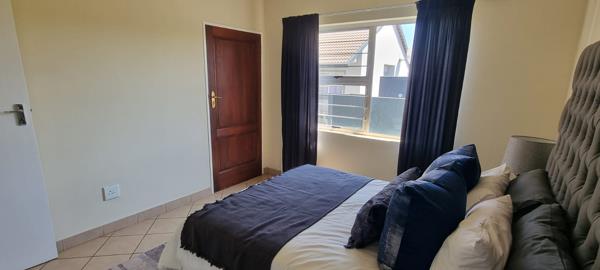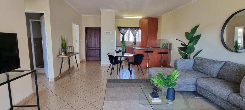 The apartment offers: 1 Bedroom with tiles and built-in cupboards. 1 bathroom with a shower, toilet, bath and basin. Kitchen and lounge area.