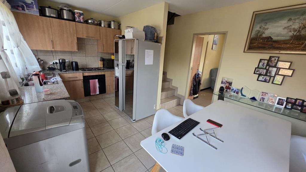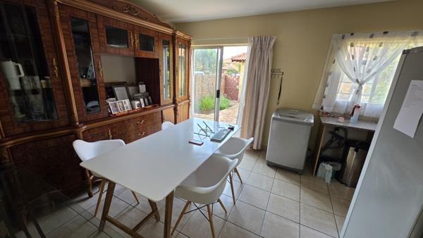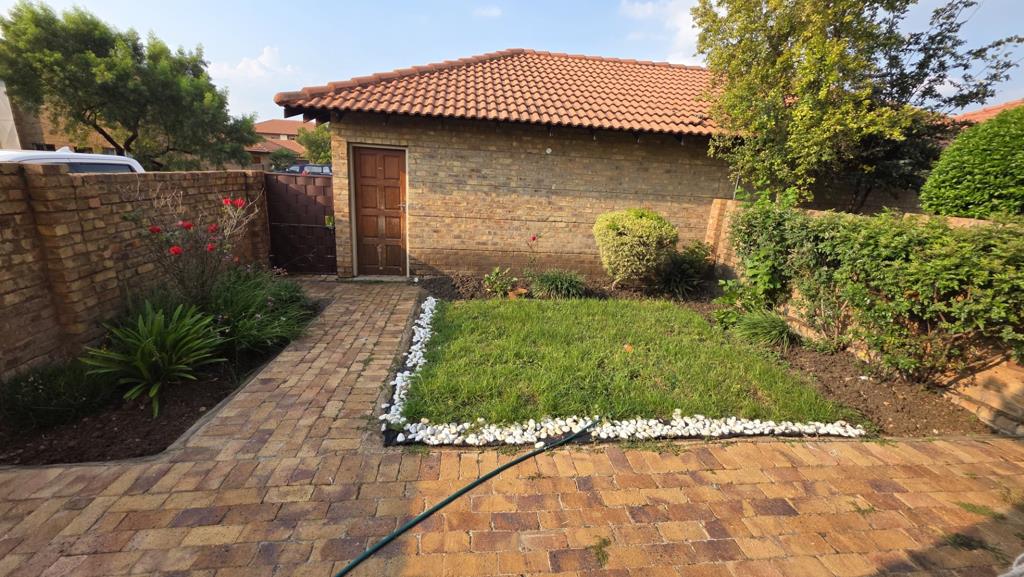 This Townhouse offers 3 Bedrooms with built-in cupboards, 2 bathrooms that are fully tiled. Kitchen with built-in cupboards for extra storage and granite counter tops. Open plan living area that leads out to own private garden that is ideal for relaxing. 2 Garages and 2 Parking''s.
