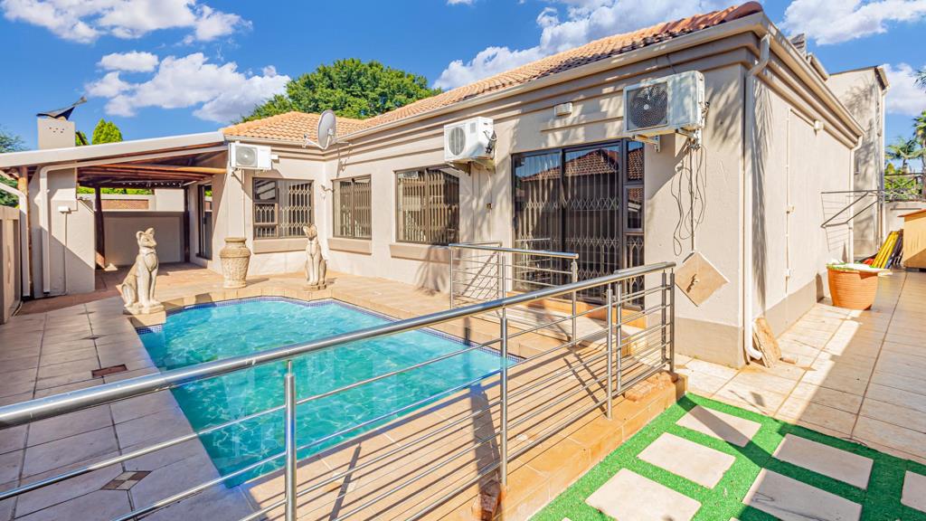 Modern full tittle House for Sale in Sought-After Annlin.This well-maintained home combines style, comfort, and functionality perfect for families, young professionals, or savvy investors. Situated within a secure complex. Key Features: 3 Bedrooms 2 Bathrooms Modern Open-Plan Kitchen with sleek finishes Spacious Living Area flowing seamlessly to outdoor spaces Patio with Built-In Braai ideal for entertaining Beautifully Manicured Garden Private Sparkling Pool Double Garage and double carport ,Air conditioning through out the house for both a warm and a cool space for maximum comfort ,theres also a beautiful 1 bedroom apartment comprises of its own separate entrance and parking that can be utilised for generating Rental income or use it as a staff accommodation .The property is Pet-friendly and situated in a secure complex Located close to top schools, shopping centres, medical facilities, and major transport routes, this townhouse offers the perfect blend of modern convenience and tranquil suburban living.