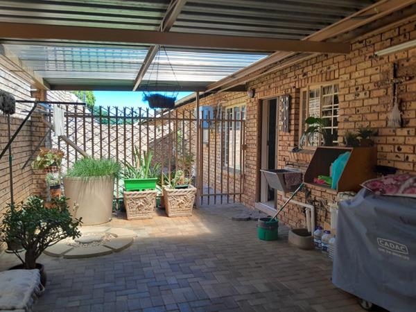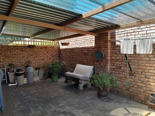 Patio with built in braai and glass folding doors to a manageable luscious garden with irrigation system