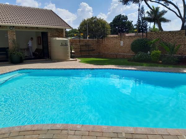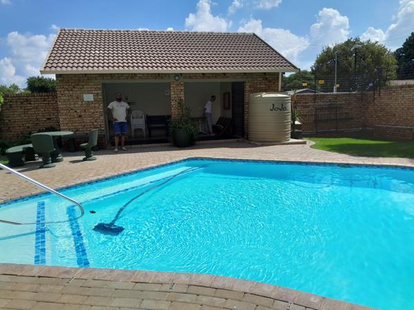 This Lovely Townhouse offers 3 Bedrooms with built-in cupboards, 2 bathrooms that are fully tiled. Kitchen with built-in cupboards for extra storage and breakfast nook that is perfect for meals with family. Open plan living area that leads out to Patio with spacious private garden that is ideal for relaxing and Built-in braai for entertaining guests. Double Garage and Parking. 2 Water tanks to supply water to plants and garden.