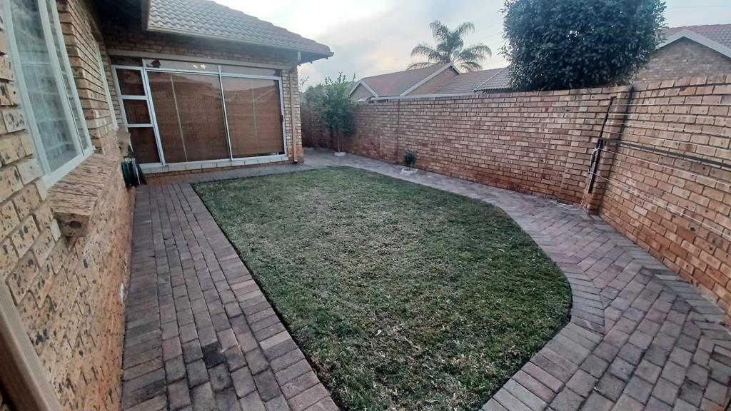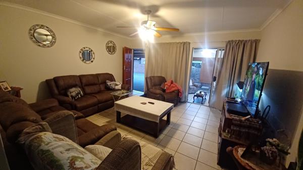 This stunning three spacious bedroomed townhouse with two large bathrooms, a huge dinning area, big lounge and lovely braai area, enclosed with glass doors, stunning wrap around garden, double automated garage, double carport is a steal!