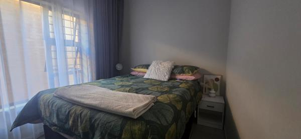 Step inside to find an open-plan living and kitchen area, ideal for relaxed living and entertaining. Both bedrooms are spacious and filled with natural light, offering built-in cupboards and a serene atmosphere.