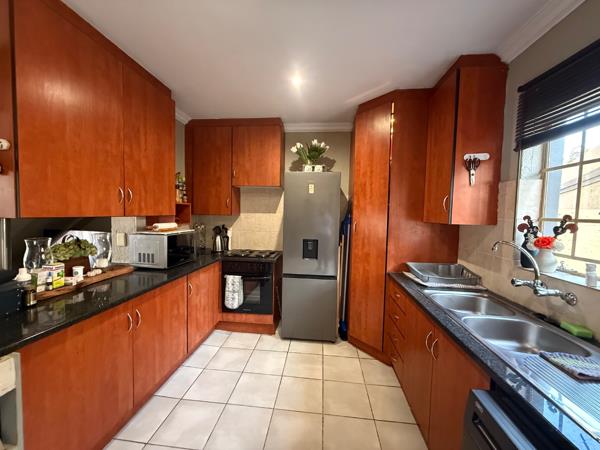 This well-kept townhouse in Annlin features, upstairs, 2 bedrooms and a full bathroom. The downstairs area offers a spacious living room, kitchen, and guest toilet. Additional highlights include a patio with a built-in braai, a neat garden, a single garage, and a single carport.