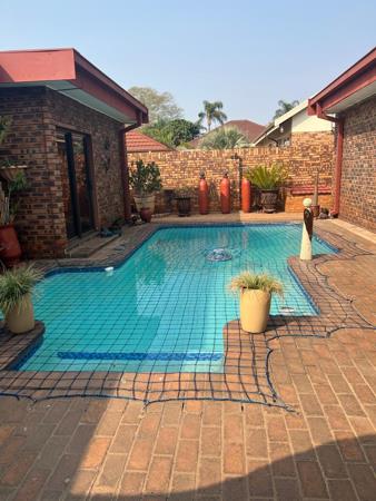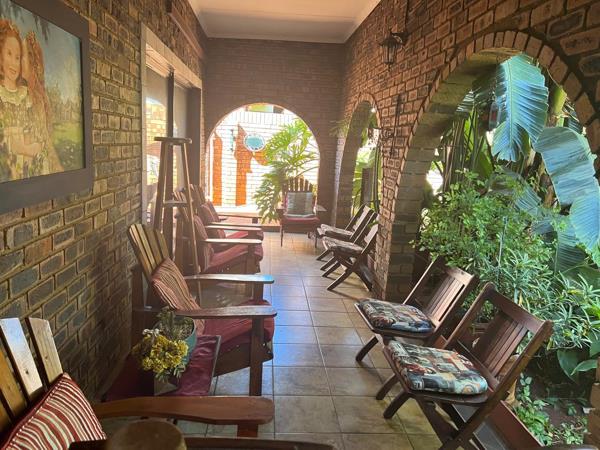 It boasts 6 generous bedrooms and 3 bathrooms (2 en-suite), each fitted with air conditioning for year-round comfort. The expansive living and dining areas connect to a second lounge with a cosy fireplace and built-in bar, while the large modern kitchen impresses with granite countertops, a Smeg gas stove, built-in Whirlpool fridge/freezer, and a separate scullery, laundry, and pantry. A private study provides the ideal work-from-home space.