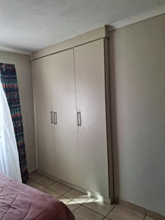 This neat ground-floor unit, privately positioned at the back of the complex, offers 2 bedrooms with built-in cupboards and 1 bathroom with a shower-over-bath. The open-plan kitchen, fitted with ample cupboards and a washing machine space neatly tucked away in a closed cupboard, flows into the spacious lounge with DSTV and fibre ports, leading out to a private patio. A linen cupboard in the passage adds extra storage convenience.