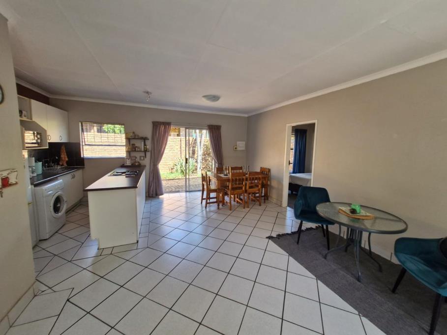 The spacious open-plan kitchen and lounge area is flooded with natural light, creating a welcoming space to relax or entertain. For added versatility, a separate flatlet with its own bathroom (shower and toilet) provides options for extended family, a caregiver, or rental income. With a paved, covered carport for two vehicles, this full-title property is situated in a well-maintained complex with a communal swimming pool area (with communal braai facilities) which provide perks of outdoor living without the hassle of garden maintenace.