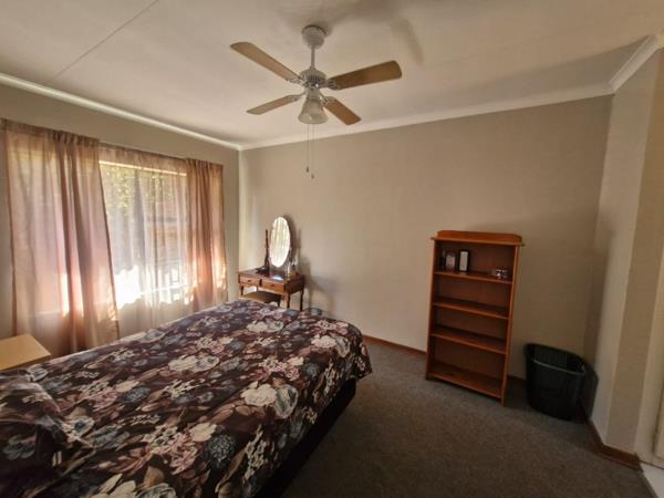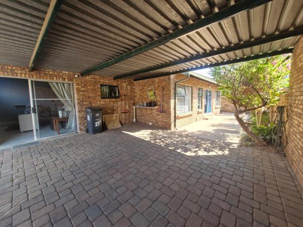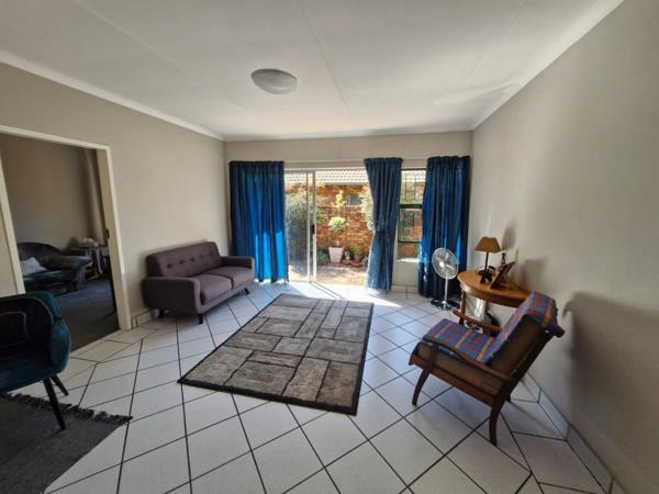 The spacious open-plan kitchen and lounge area is flooded with natural light, creating a welcoming space to relax or entertain. For added versatility, a separate flatlet with its own bathroom (shower and toilet) provides options for extended family, a caregiver, or rental income. With a paved, covered carport for two vehicles, this full-title property is situated in a well-maintained complex with a communal swimming pool area (with communal braai facilities) which provide perks of outdoor living without the hassle of garden maintenace.