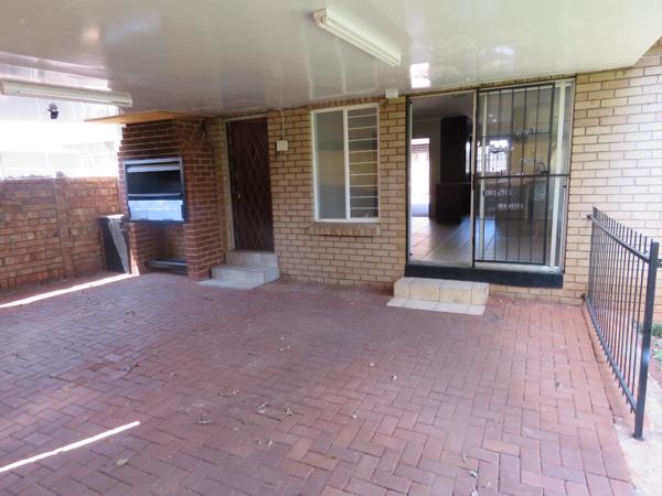 The spacious bathroom offers a bath and shower. All bedrooms are equipped with built in cupboards. The living area opens up to a large patio with built in braai. You can view the well maintained garden while entertaining your friends. The garden wraps around the house and leads to a large wendy house that is sold with the property.