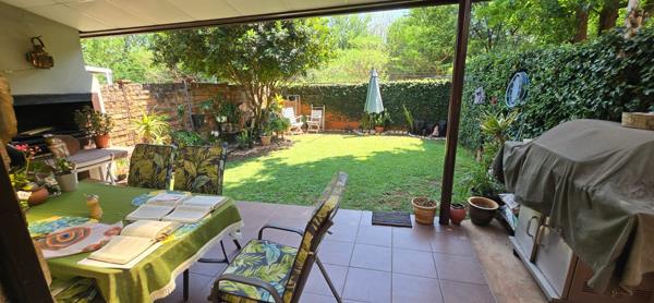 This Townhouse offers 2 bedrooms with built-in cupboards, 1 bathrooms that is fully tiled. Modern kitchen with built-in cupboards for extra storage. Open plan living area that leads out to patio with built-in braai overlooking own garden that is ideal for relaxing and entertaining guests. 2 garages for secure parking.