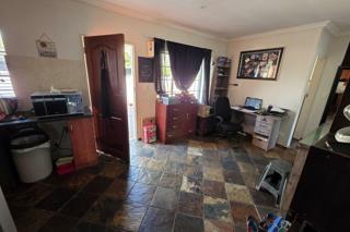Step inside to discover a light-filled open-plan living space that flows effortlessly from the kitchen into the lounge area, creating a warm and inviting atmosphere. The kitchen offers ample built-in cupboards, granite countertops and practical workspace, making everyday meal preparation enjoyable. The living area leads out onto a covered patio with a built-in braaiperfect for weekend relaxation or entertaining family and friendswhile overlooking a lush green garden that provides a peaceful outdoor retreat.