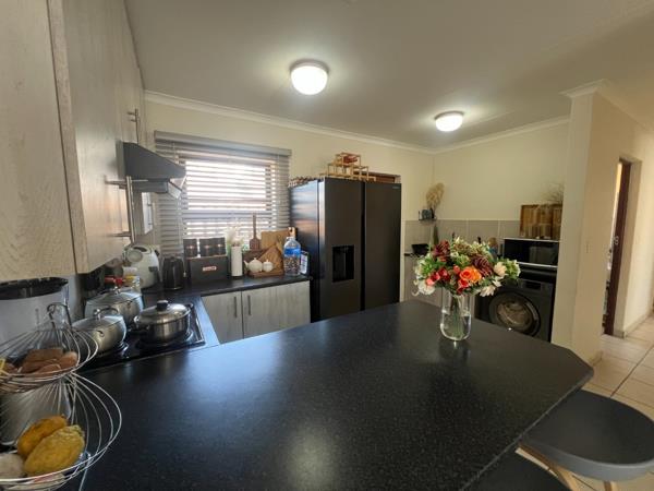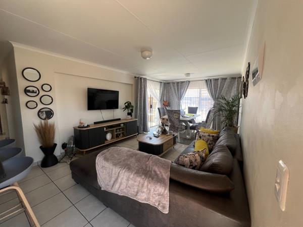 Welcome to this modern simplex situated in a beautifully maintained estate, offering the perfect combination of comfort, style, and security. Step inside to find an inviting open-plan living and dining area that flows seamlessly into a stunning kitchen, fitted with a hob, oven, extractor fan, and a convenient breakfast nook. A separate laundry area is neatly positioned at the back for added practicality.
