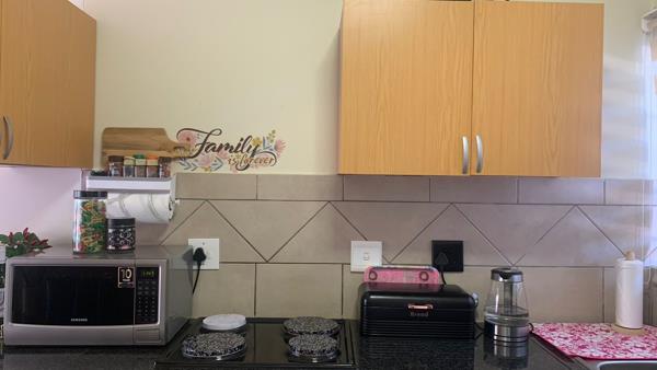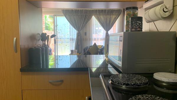 The ground floor unit welcomes you with a family sized functional kitchen with 4 plated stove, multi fictional oven , double sink, breakfast nook extended counter plus ample cupboard space opening up to an airy living area which closes off with a sliding door overlooking the private well maintained garden.