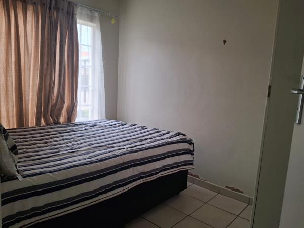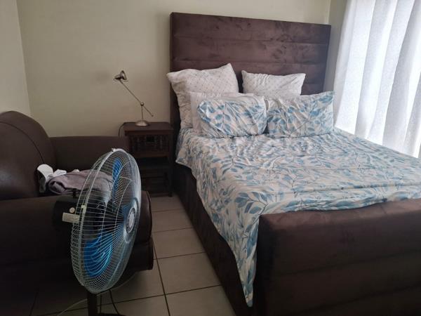 Discover this inviting 2-bedroom, 1-bathroom home located in the suburban area of Clarina, Akasia. The residence features an open-plan lounge and a functional kitchen, complete with light wood-look cabinetry, an integrated washing machine, electric hob, and oven. Tiled flooring extends throughout the property for easy maintenance. Step outside to a private garden and paved patio area, perfect for outdoor enjoyment, complemented by access to a communal pool. Security is enhanced with an access gate, electric fencing, and 24-hour security, ensuring peace of mind. This property also offers two parking spaces and allows pets.