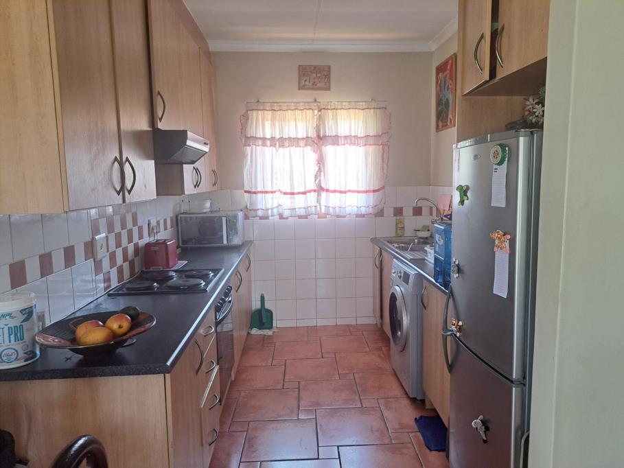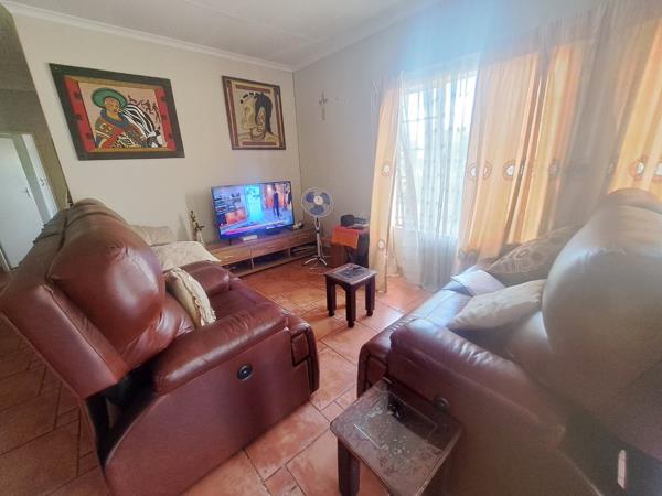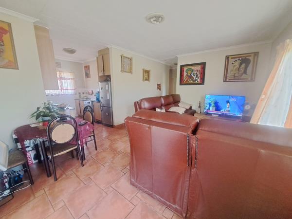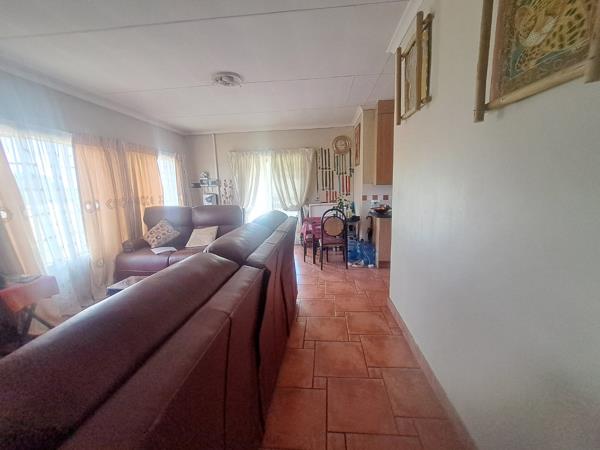 The open-plan kitchen flows into the spacious living area, creating a warm and inviting space for family living. Step onto the balcony or enjoy the private garden, complete with a built-in braai.