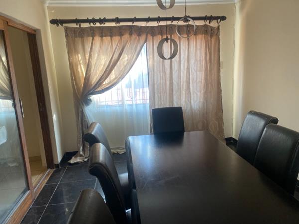 Step inside to a spacious lounge area that flows seamlessly into a dedicated dining room, perfect for family meals or hosting guests. The fully equipped kitchen features ample cupboard space and a functional layout, making meal prep a breeze.