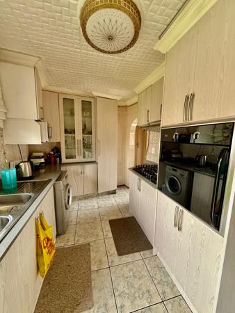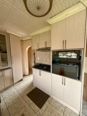 Kitchen Fitted with a gas stove and ample cupboard space.