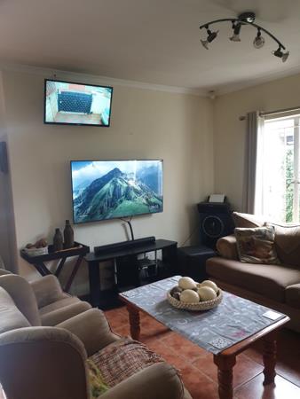 The heart of the home is a beautifully designed kitchen, featuring contemporary finishes and a convenient separate scullery. The inviting living room provides a cozy space for relaxation, enhanced by two air conditioning units for year-round comfort.