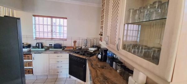 Outside, the covered patio reveals simple outdoor living enjoy morning coffee or weekend braais while under the shadows of tall pine trees.