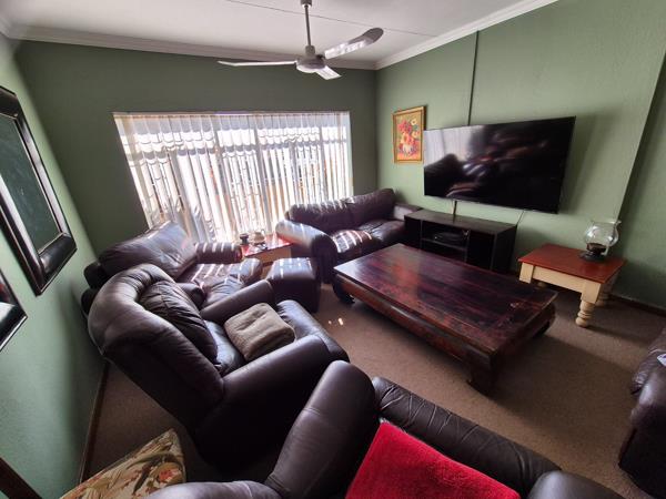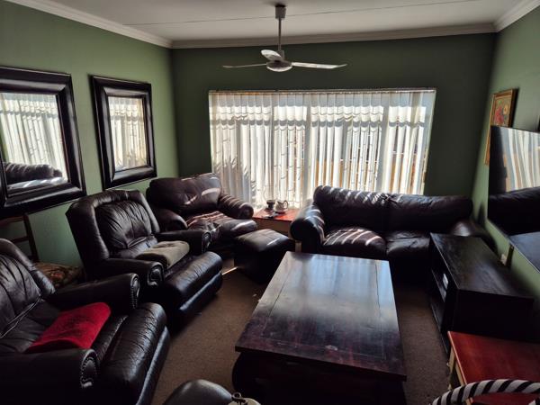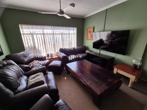 A modern full title house in a security estate as neat as a pin. It has 5 bedrooms (or 4 with study), 2 bathrooms, kitchen, 3 living areas, pool and 2 garages with a Carport with the Wendy underneath.