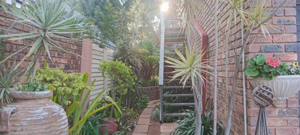 The separate flatlet has its own private entrance and internal staircase. It features an open-plan bedroom, lounge, kitchenette, en-suite bathroom, and walk-in closet. Currently rented out at R4,000/month.