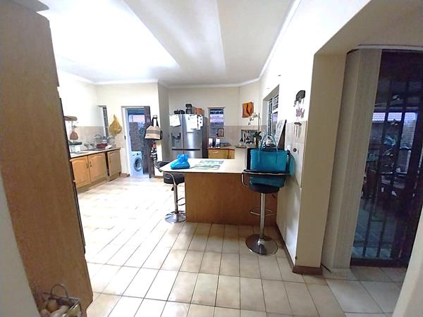 Security is comprehensive, with an alarm system, outdoor beams, burglar bars, security gates, electric fencing, and an electronic gate. The garage doors are automatic and there is direct access from the garage into the house.