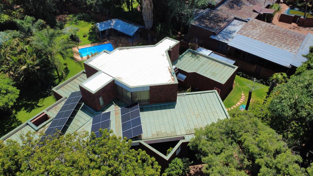 This spacious double-storey family home in the sought-after Florauna Avenue offers an impressive 453m2 under roof on a generous 1 977m2 stand. Designed for comfortable living, it features four bedrooms and three bathrooms, including a luxurious main suite with his-and-hers bathrooms, a walk-through wardrobe, and a private balcony overlooking the pool and garden. The home boasts two lounges, a dining room, a well-appointed kitchen with a laundry, a large study with outside access, and two charming indoor garden areas. Most of the home is tiled, with carpeting in select rooms for added warmth. Energy-efficient living is ensured with a solar system and borehole, while the propertys layout supports seamless indoor-outdoor flow.