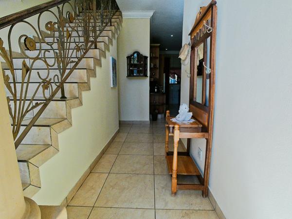 Step inside the main residence, where a grand entrance hall with a sweeping staircase sets the tone for elegance. The home boasts a generous open-plan layout flowing seamlessly from the sunlit lounge to the sophisticated dining area and into a contemporary open-plan kitchen, complete with a central island, scullery, and private study nook at the scullery area.
