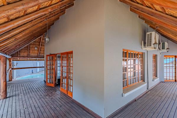Luxurious 5-Bedroom Double-Storey Thatch Roof Home For Sale In Heatherview. Experience timeless elegance and modern comfort in this exceptional double-storey home featuring a captivating thath roof design. Boasting 4 spacious bedrooms and 3 stylish bathrooms, the main bedroom offers a private en-suite sanctuary with premium finishes.
