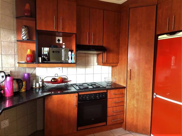 Located on 1st floor of a very secure complex, this beautiful 2 bedrooms apartment consists of one full bathroom and a modern kitchen with granite tops. Open plan lounge and dining area is very spacious and leads to a balcony with a built-in braai.