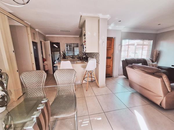 Inside, you''ll find three spacious bedrooms with built-in cupboards and a bathroom featuring both a bath and a shower. The open-plan layout ensures a seamless flow from the lounge to the dining room, perfect for family living.