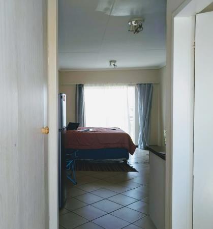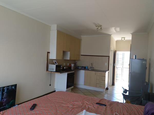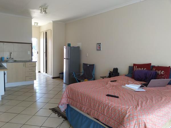 This bachelor is situated on the first floor and have a spacious open plan bedroom and living area with the cupboard space at the entrance of the flat that leaves the open-plan area free to decorate to your hearts delight. A nice kitchen with build in cupboards The bathroom consist of a shower, washbasin and toilet.