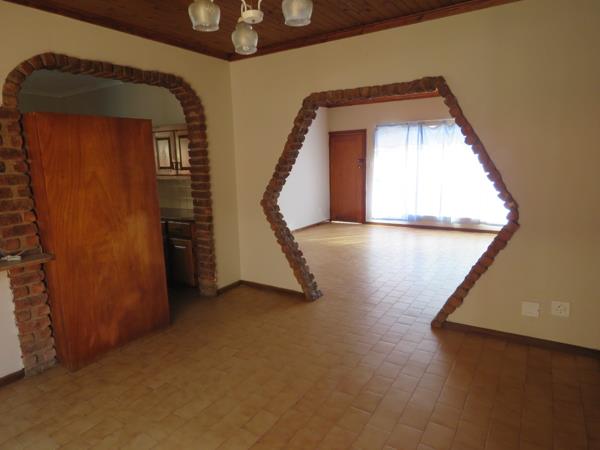 The living room and dining room are spacious and flows to the open plan kitchen with eye level oven and electric hob. The dining room has a glass sliding door that leads to a patio area. All bedrooms have built in cupboards and tiled floors. The house offers pre paid electricity. It has one lock up garage and lots of car ports to offer plenty under cover parking.