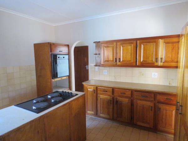 This large house lies on a big stand in a quiet street. The house offers five spacious bedrooms with two bathrooms. The floors are newly tiled. The spacious open plan kitchen sits in the centre of the house with two bedrooms on the one side and three bedrooms on the other side. This makes it ideal for the extended family who needs there separate space. It can also work as two separate units. The kitchen was divided into two kitchens for that purpose but can easily be turned back into one kitchen. So, at the moment it offers two kitchens.