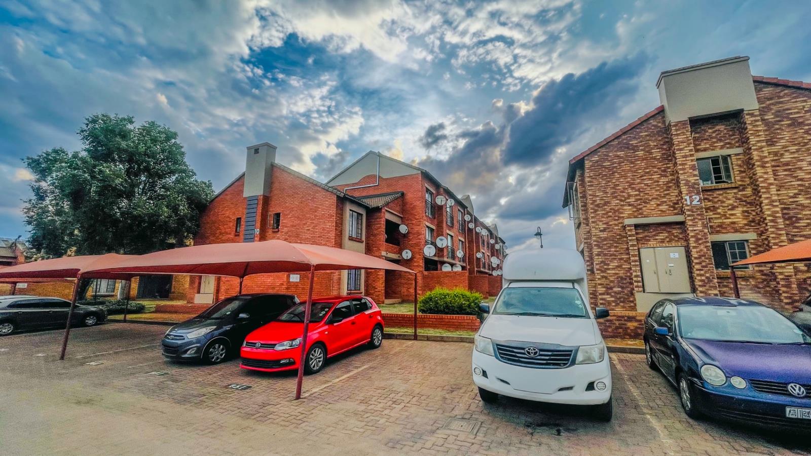 Beyond the apartment, the distinguished security estate offers an array of communal amenities. Residents benefit from ample covered parking and expansive green spaces adorned with mature trees and paved walkways. Recreational facilities, including a basketball hoop, cater to active pursuits, fostering a vibrant community atmosphere. The architectural aesthetic of the multi-story brick buildings, complemented by well-maintained exteriors, contributes to a welcoming kerb appeal. The presence of solar panels on some buildings within the complex underscores a forward-thinking approach to energy efficiency.