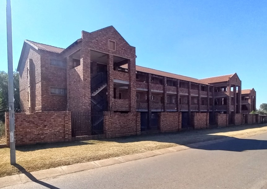 This corner, one bedroom apartment consists of a living area, kitchen, a spacious bedroom, and an en-suite bathroom with shower, basin and toilet. The kitchen has built-in cupboards, oven, hop and has space for a long-standing fridge. Pre-paid electricity. Secure parking is available in front of the apartment and the surrounding garden includes a mix of paving and lawn providing a spacious outdoor environment. The popular complex is close to the Klerksoord and Rosslyn industrial areas, and offers excellent security with a guard on duty at the gate.