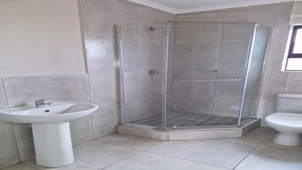 The property offers a Lounge and Dining room set in an open plan, where the dining room can fit a 4-seater table. The lounge and dining room is also set in an open plan with the Kitchen. Kitchen is optional with either granite or melamine counter tops with electric stove and oven.