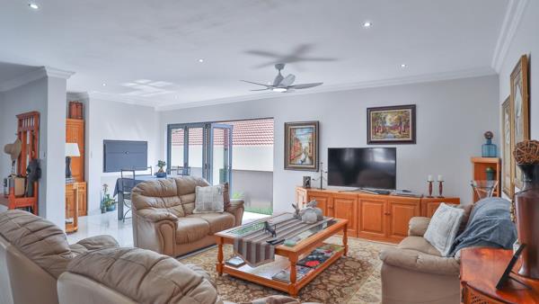Open-plan living space with a seamless flow between the dining area, lounge, and kitchen