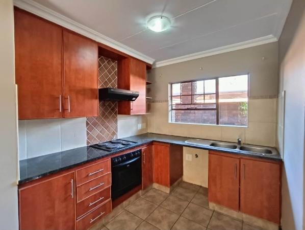 Neat Kitchen with built-in cupboards and a stove+ hob.
