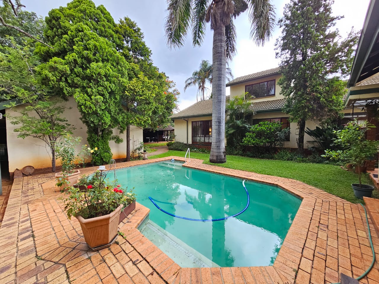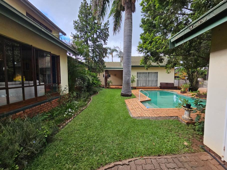 Furthermore is a spacious flatlet with it''s own open plan lounge and kitchen, 1 bedroom, and 1 bathroom. The outdoor space is well-suited for entertainment with a sizable Lapa, complete with a bar counter, overlooking a neat garden with an irrigation system and a sparkling pool. Parking offers a double garage and 2 secured carports.
