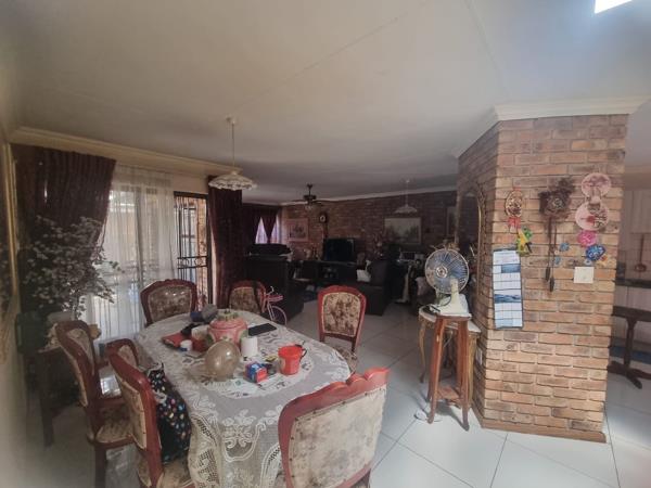a lovely spacious Living area : lounge and dinning room ,tiled floors, sliding doors walking out onto en-closed patio,